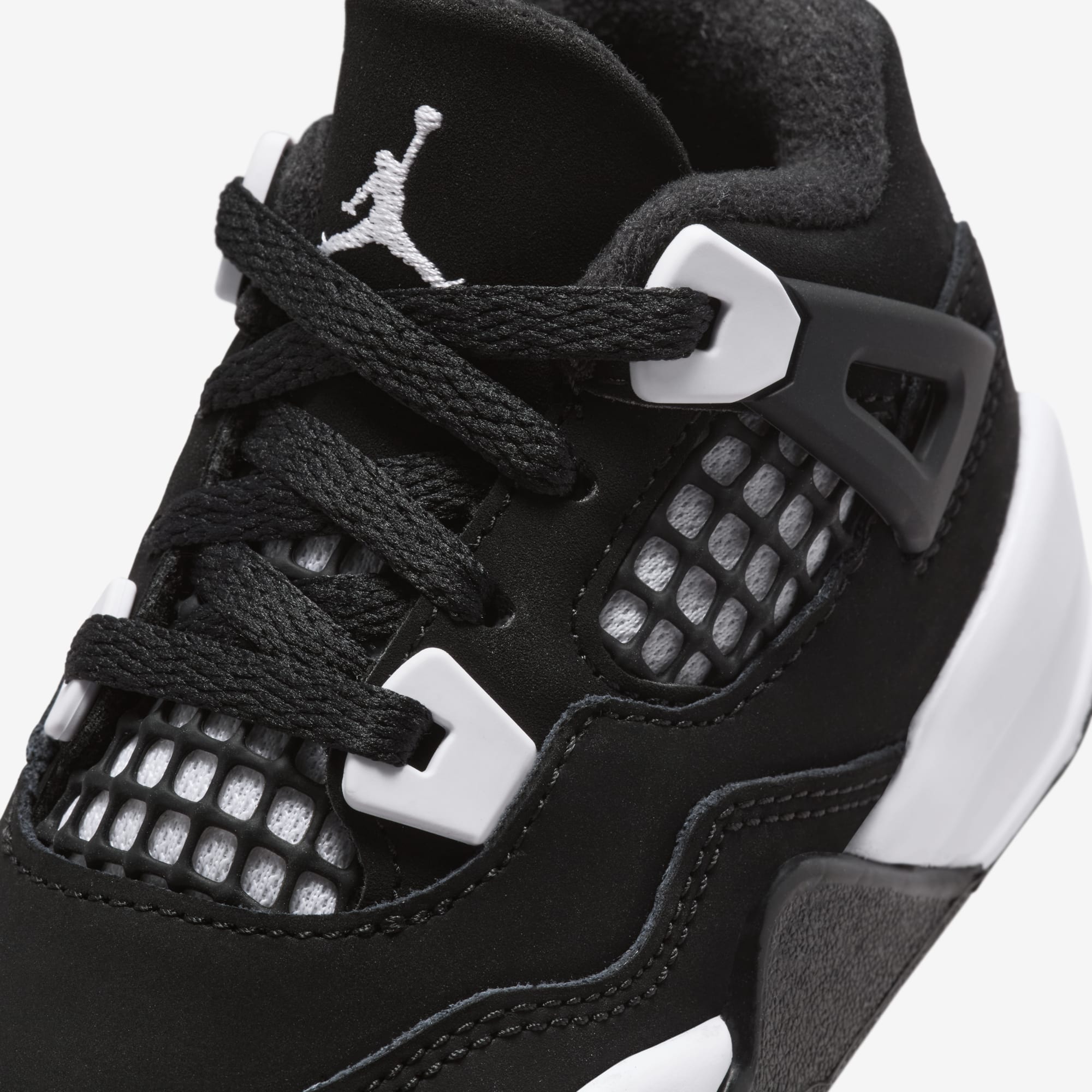 This sophisticated edition revives the iconic color-blocking from the 2006 Air Jordan 4, making it a sleek addition to your collection. Draped in black nubuck leather with tasteful white accents, it offers a classic look that's easy to style. Whether you're celebrating MJ's enduring legacy or marking the AJ4's 35th anniversary, the 'White Thunder' in its black and white colorway is ready to shine.