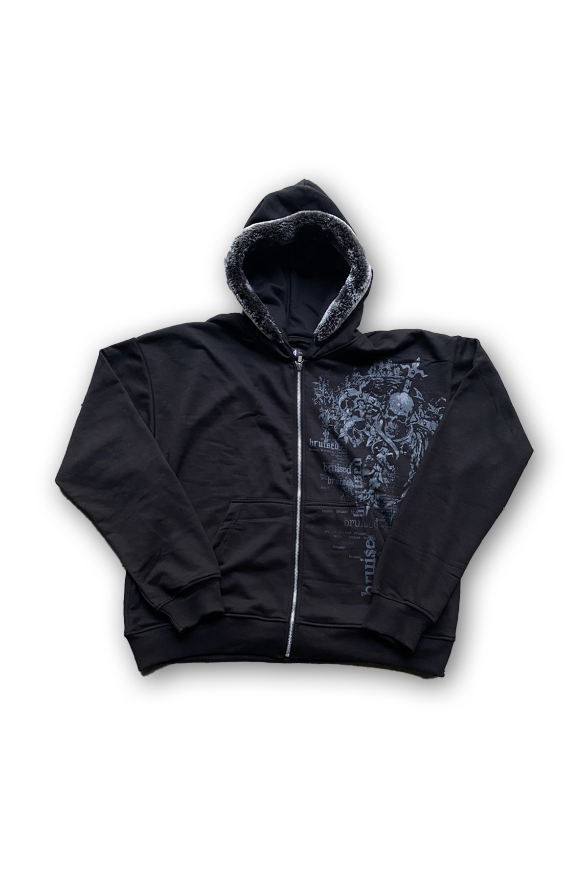 This heavyweight cotton zip-up is made for comfort and durability, with a soft feel that lasts. It features a relaxed fit and detailed screen print built to handle life’s toughest moments. Simple, reliable, and made to help you express your true self, no matter what.