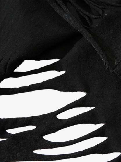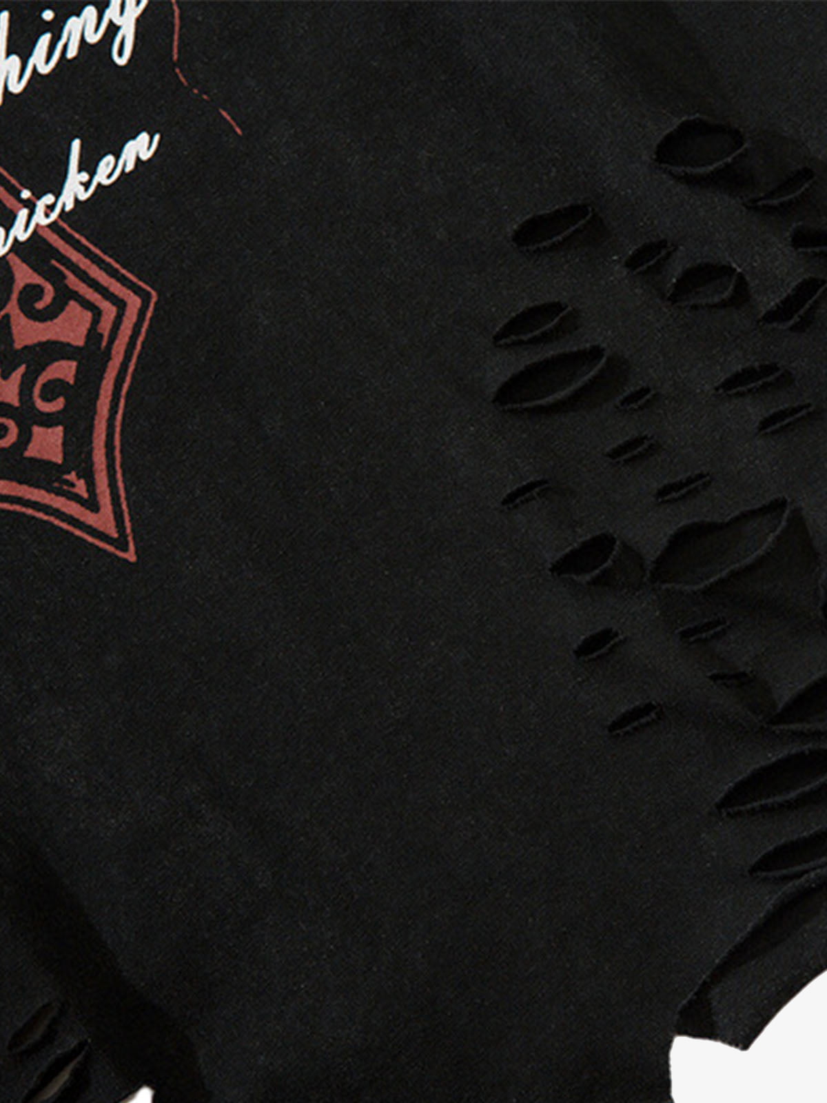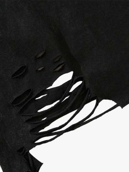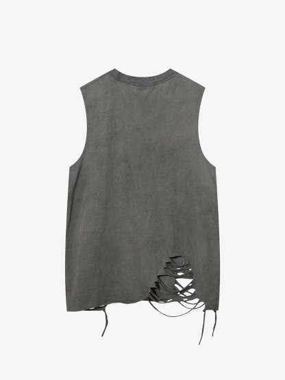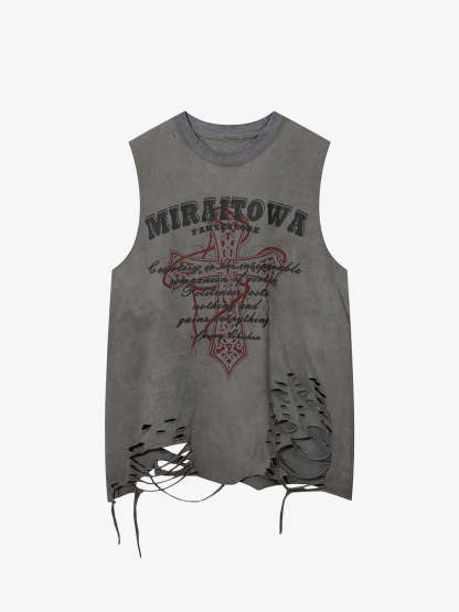 Distressed Ripped Graphic Cross Print Vest