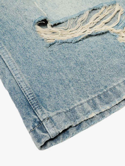 Distressed Washed Ripped Denim Jort