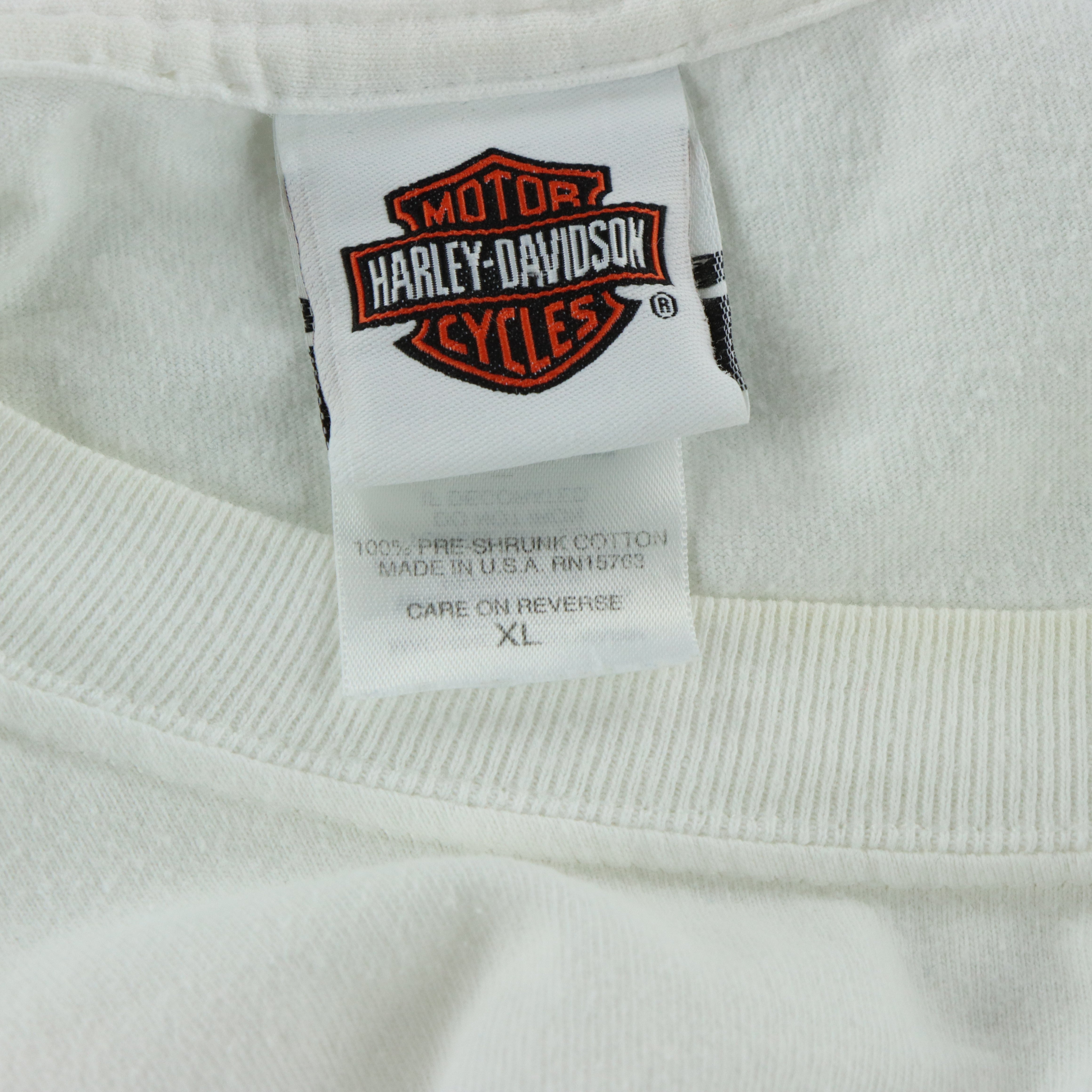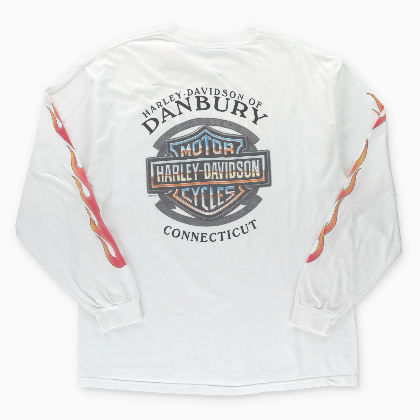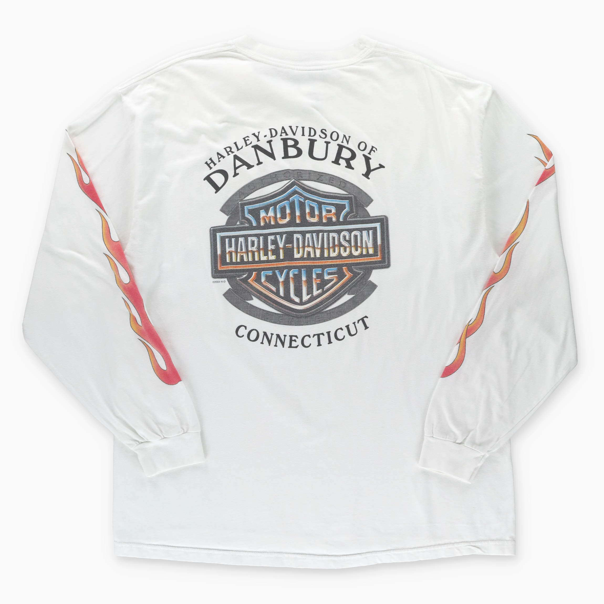 HARLEY DAVIDSON Connecticut Orange Flames Long Sleeve White Front Pocket T-Shirt USA Made (XL)