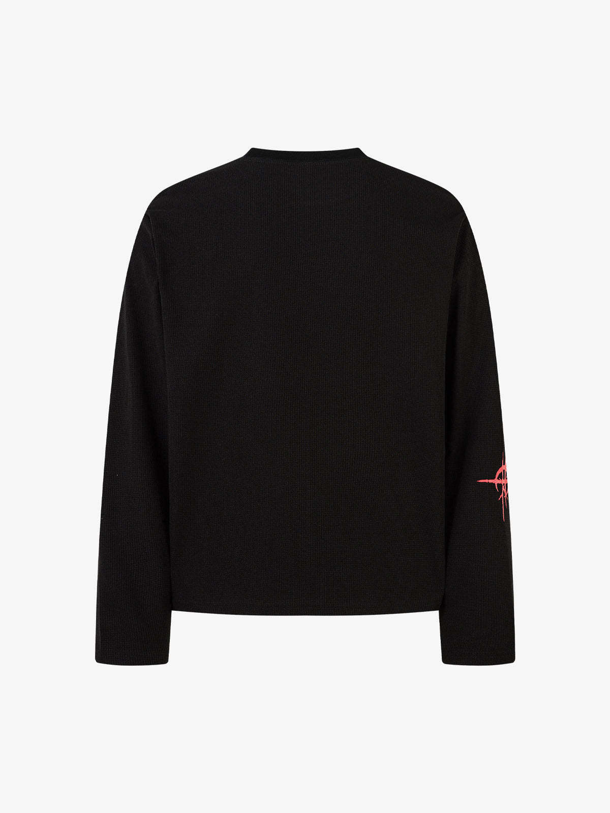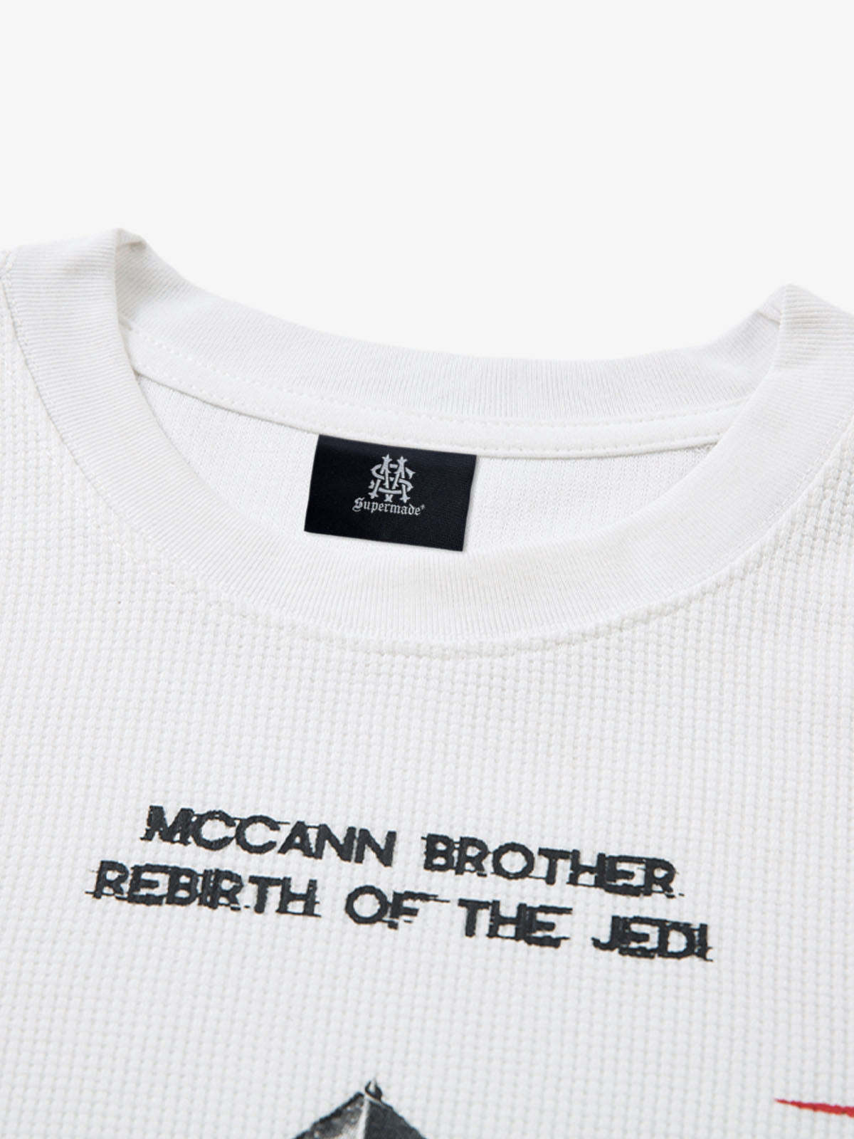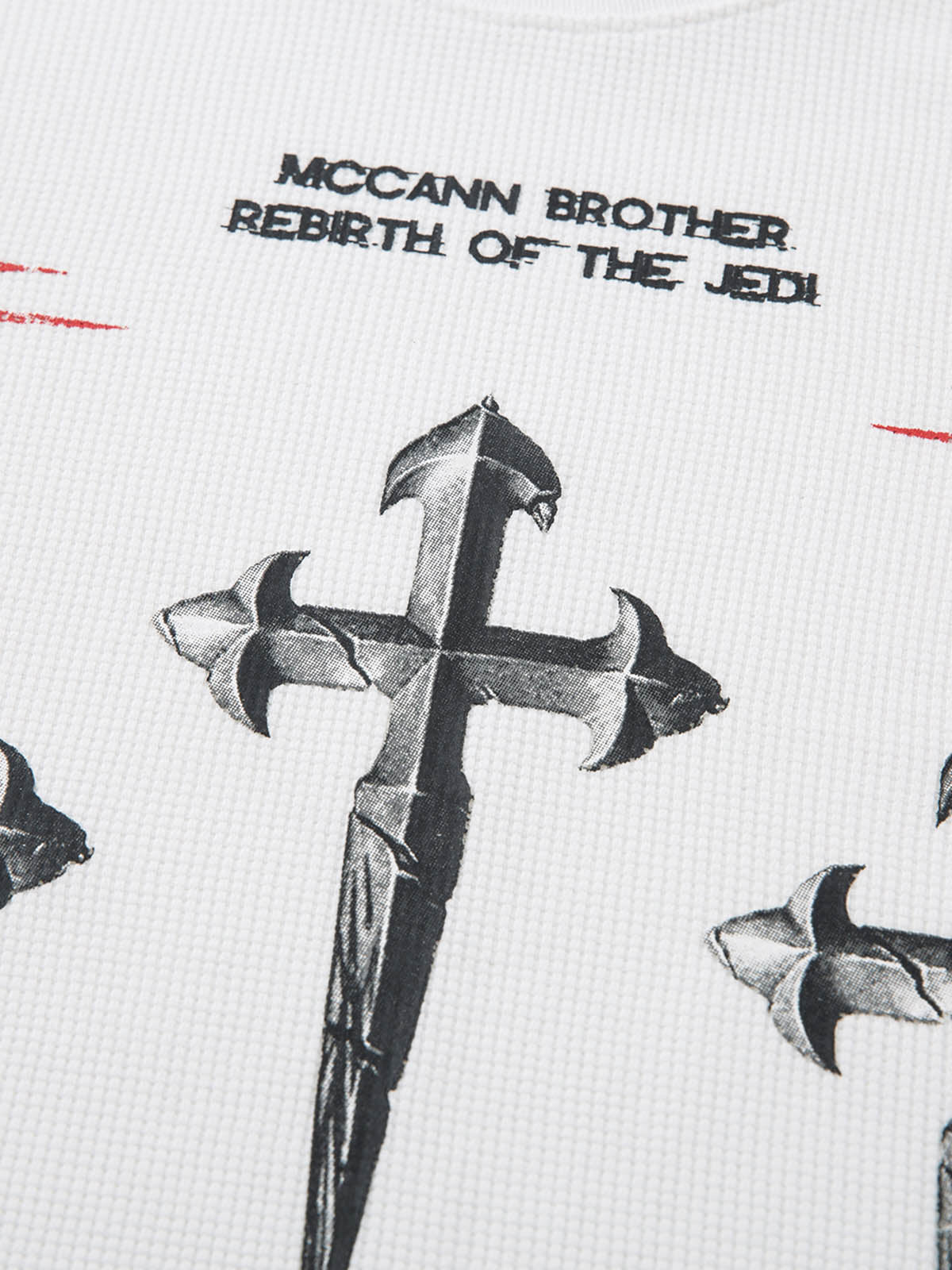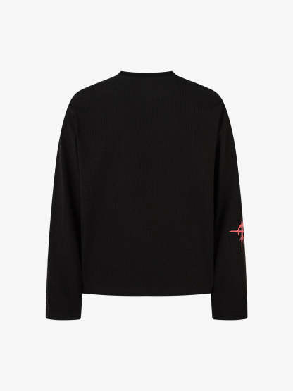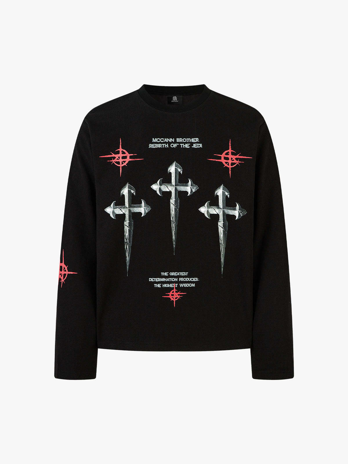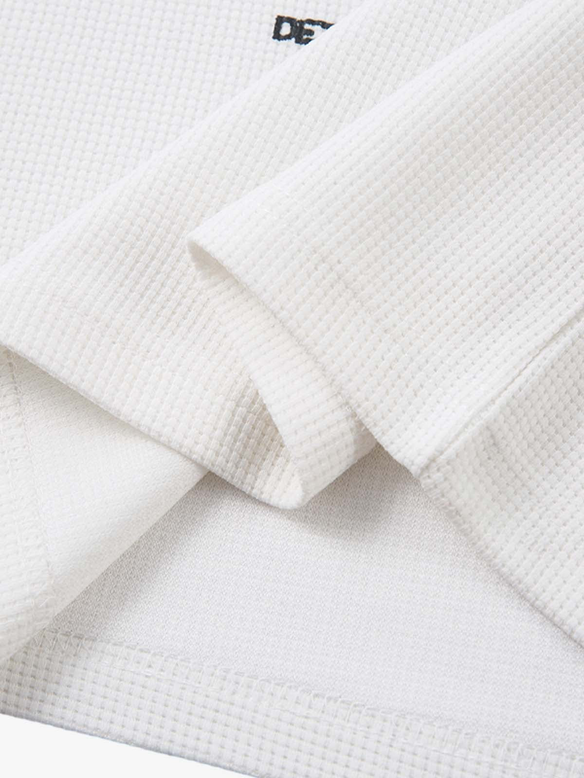Letter Print Waffle Cross Long-Sleeved T-Shirt