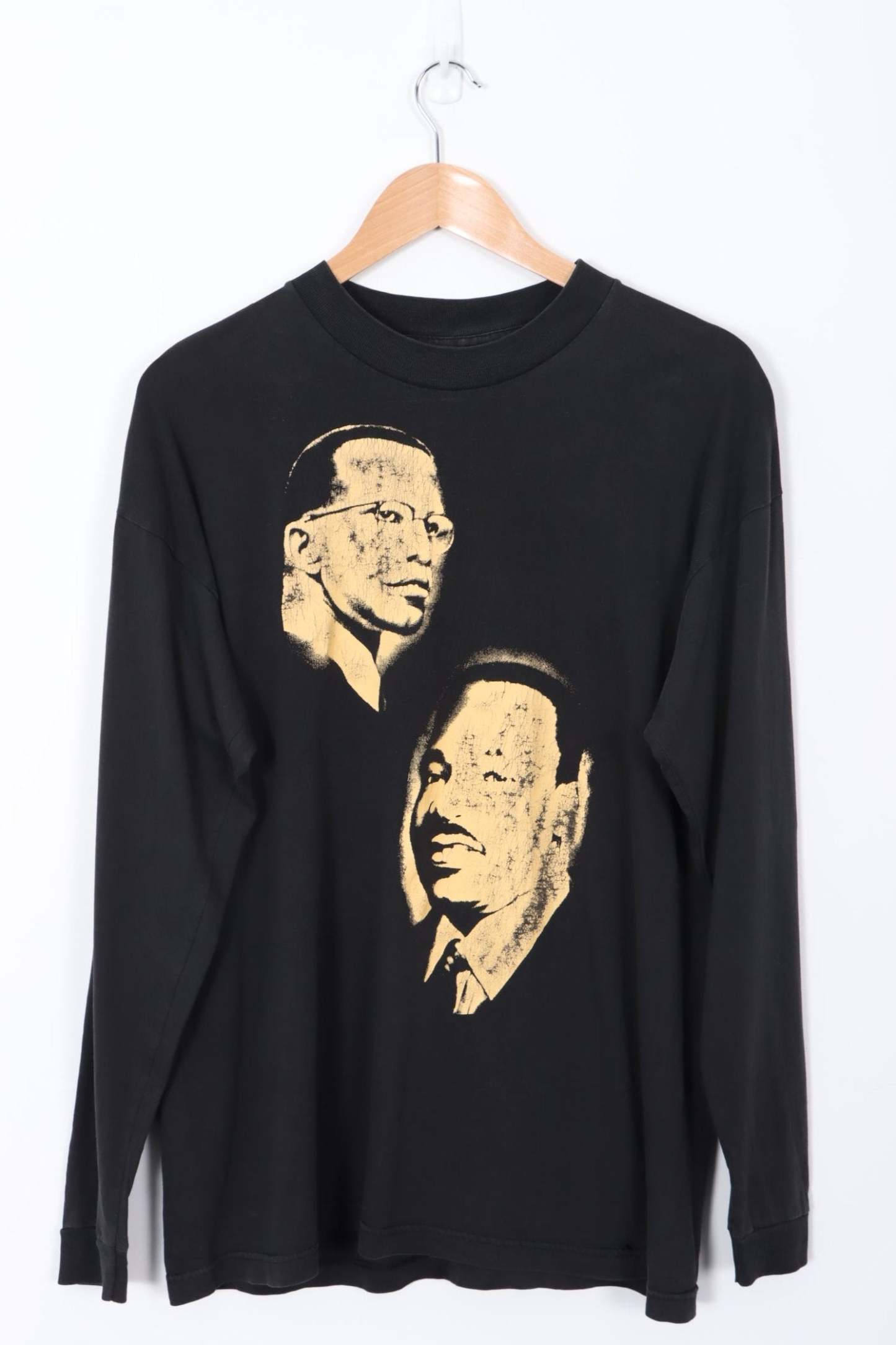 Malcolm X Martin Luther King Jr. Portrait Long Sleeve USA Made Tee (L)