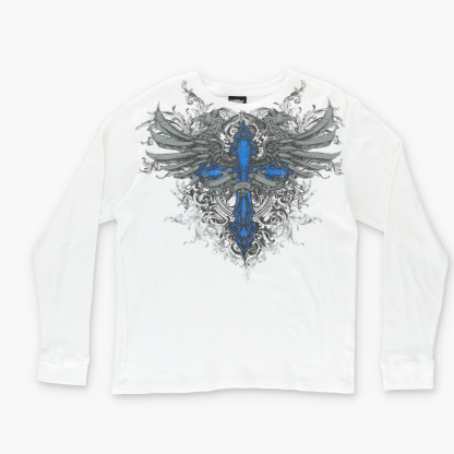 MMA ELITE Y2K Punk Cross Wing Graphic White & Blue Thermal Long Sleeve (M-L)
