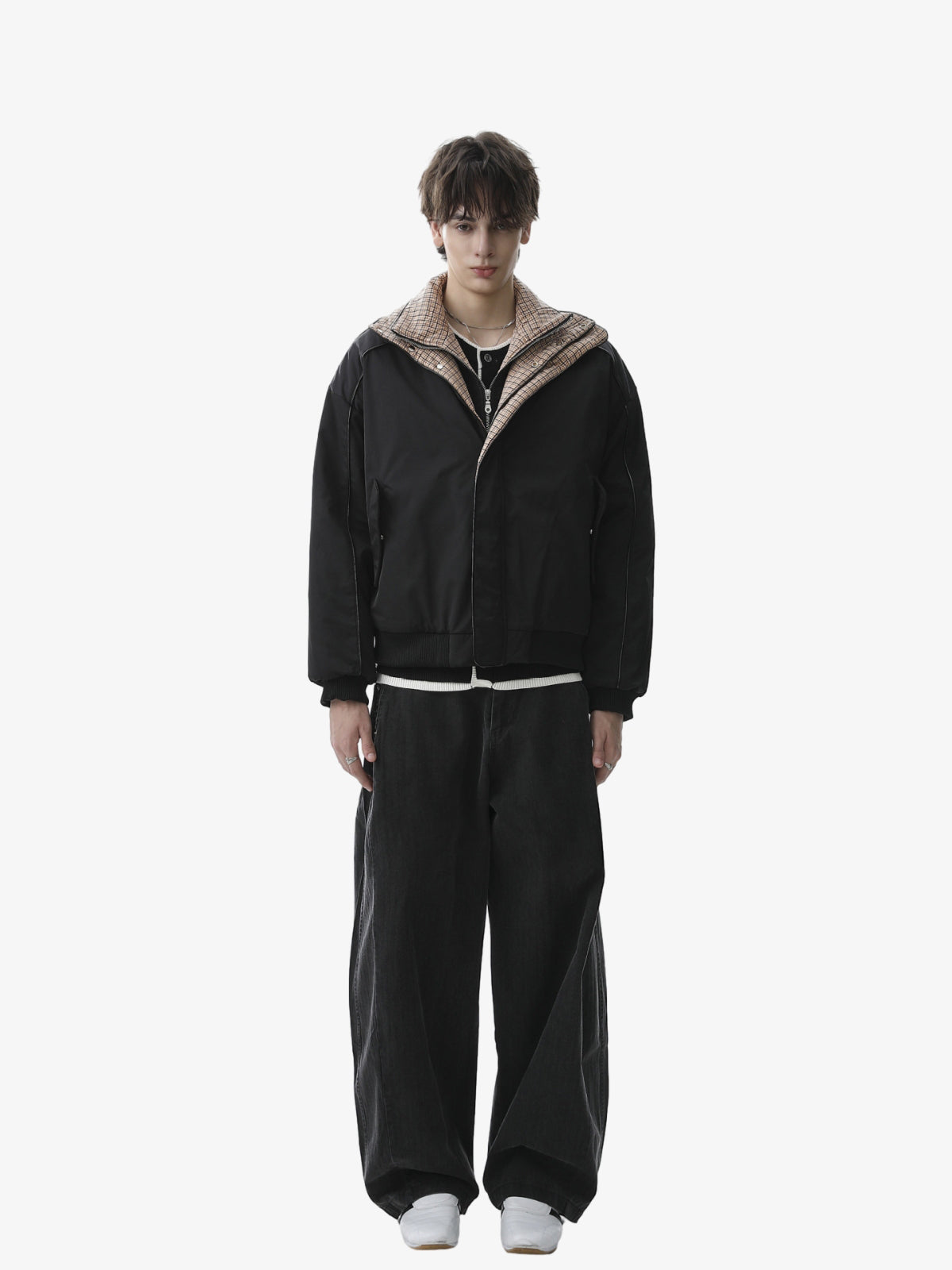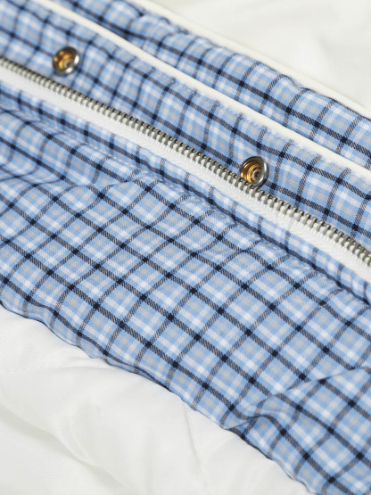 • Design Elements: Plaid collar design, front zipper closure, two side pockets