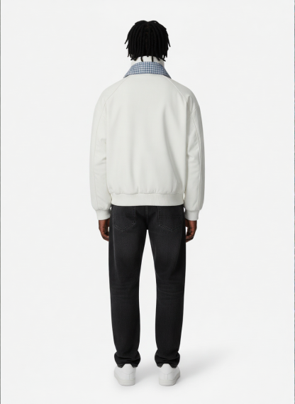 • The plaid collar adds a touch of sophistication to your casual look