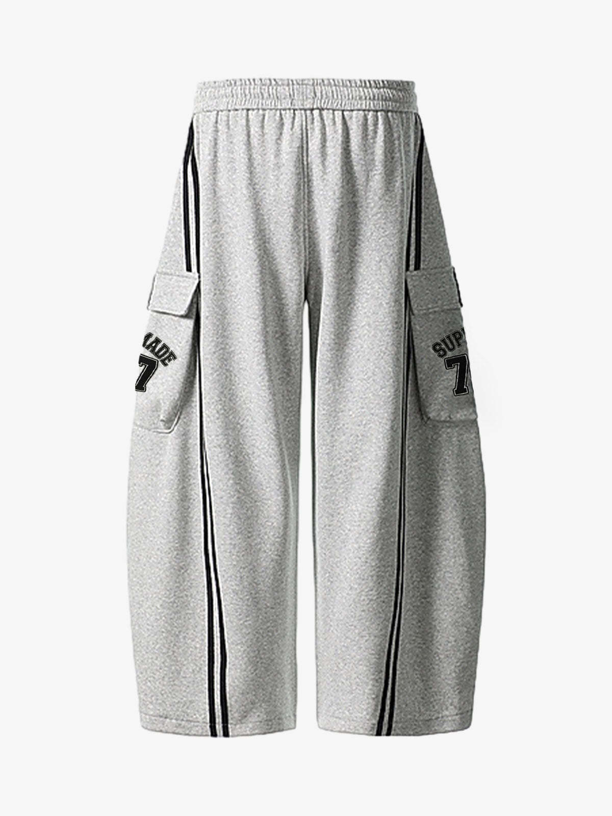 • Design Elements: Side stripes, large cargo pockets, drawstring waist