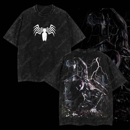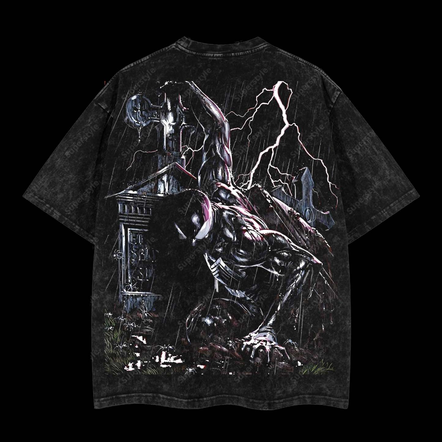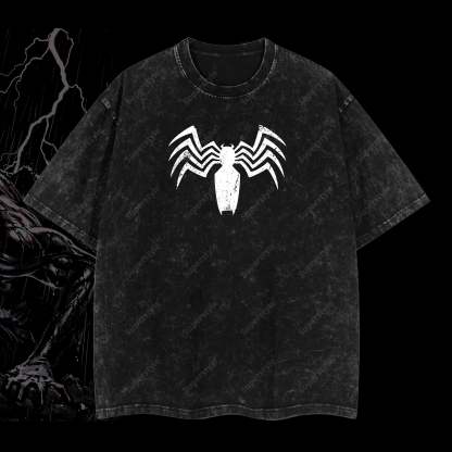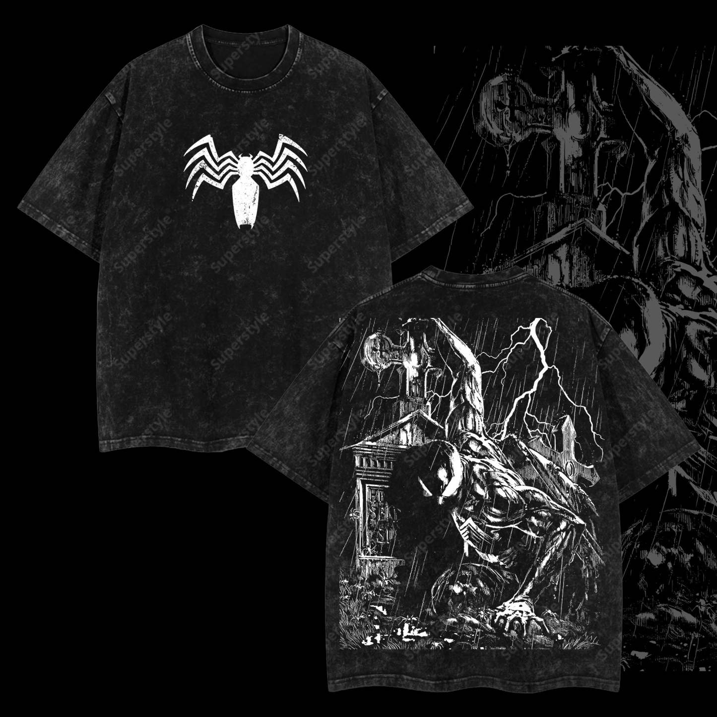 Friendly Neighborhood Spider-man Hero Dark Mutation Shadow Marvel MCU Comic Double Printed Oversize Lightweight Acid Washed T-Shirt