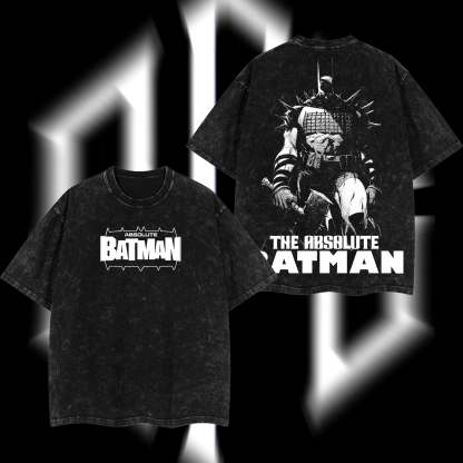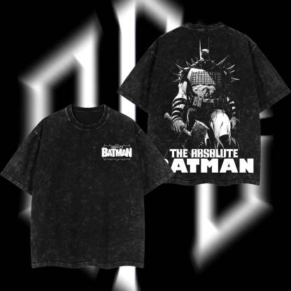 The Dark Knight "Absolute Batman" - The Gotham Guardian Hero Verse DC Comics Edition Double Printed Oversize Lightweight Acid Washed Tee