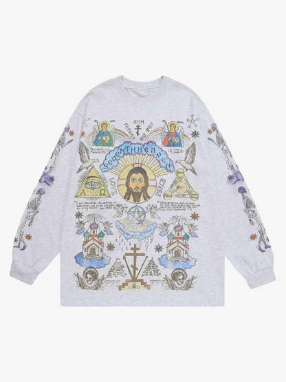 Thesupermade American High Street Graffiti Long Sleeve T-Shirt