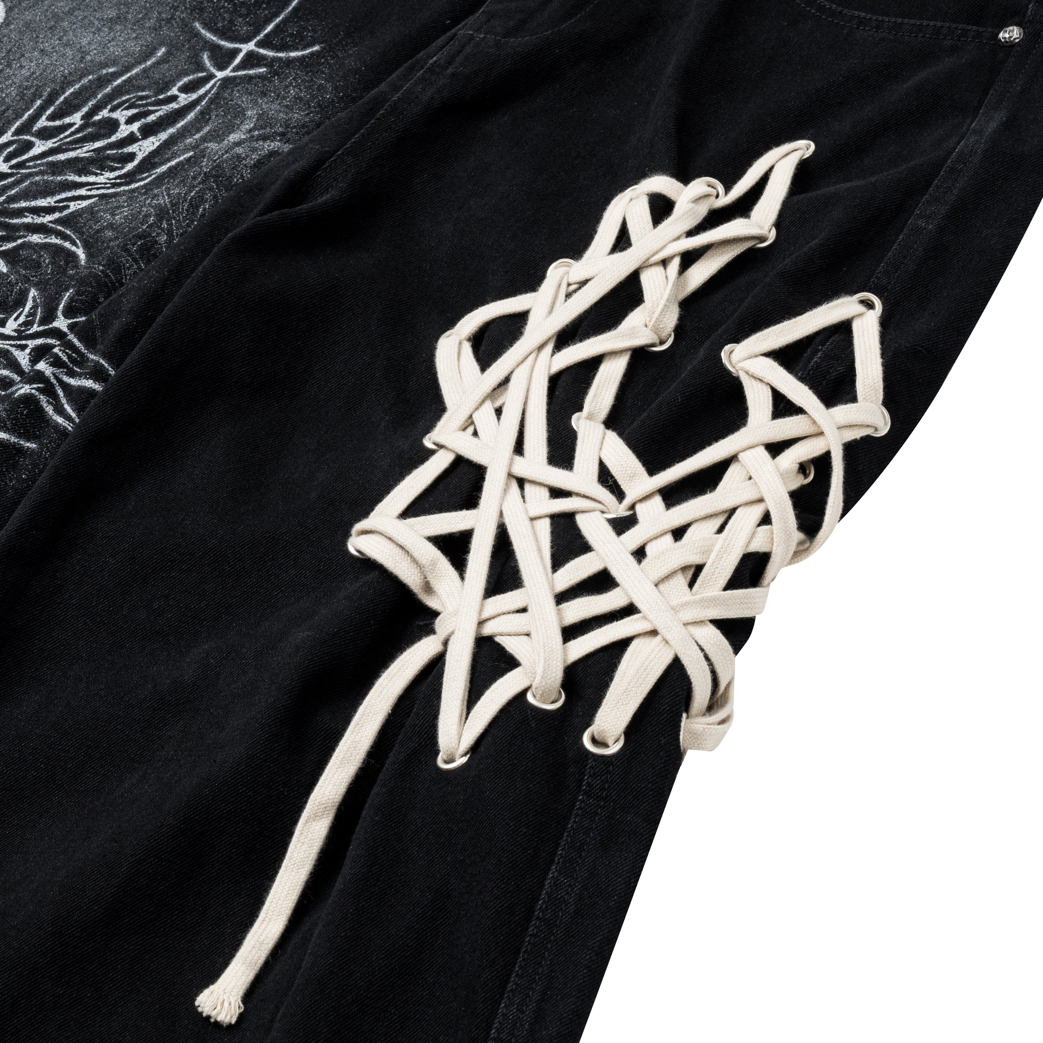 UNIZ Sigil Pants represent a convergence of contemporary craft and symbolic artistry. Each pair features handwoven lace detailing inspired by sigilism—an intentional practice of embedding meaning through visual design. The meticulous hand-weaving process ensures no two pieces are identical, creating garments that function as wearable art. Crafted with precision and artistic vision, these pants merge esoteric symbolism with refined tailoring, offering discerning individuals a statement piece that transcends conventional fashion.