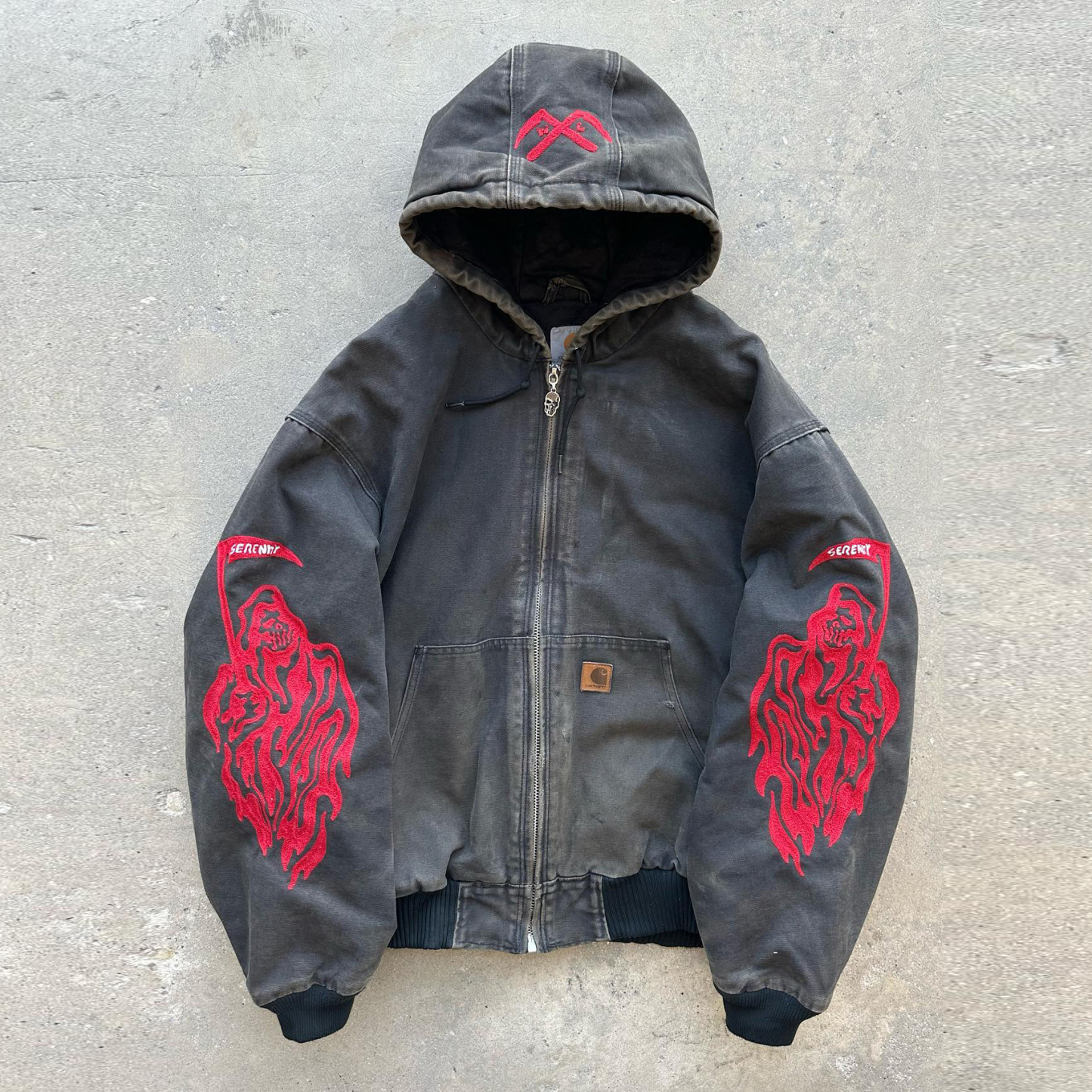 Vintage distressed skull long sleeve zip-up padded jacket