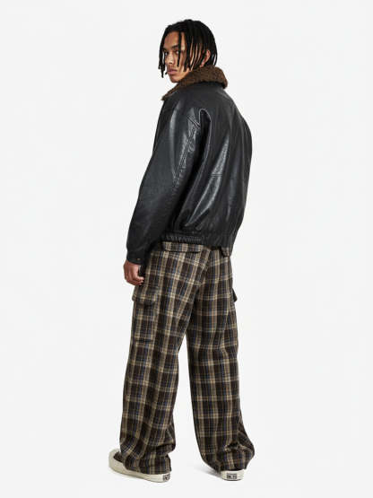 Vintage Plaid Pleated Multi-Pocket Cargo Casual Pants - 2524