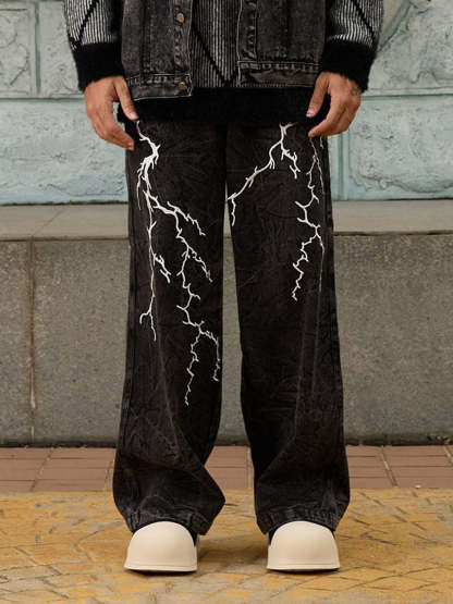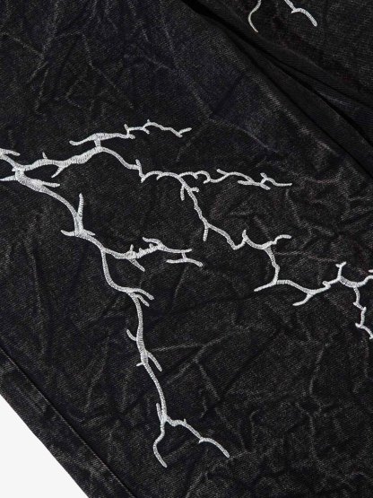 • Detail Features: Lightning Bolt Embroidery, Wide Leg, High Waist