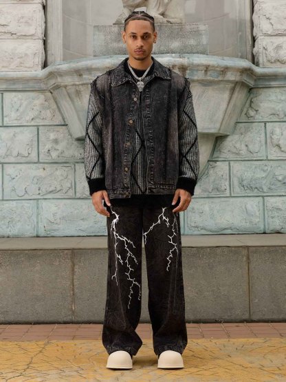 • Design Elements: Lightning Bolt Embroidery, Wide Leg Silhouette